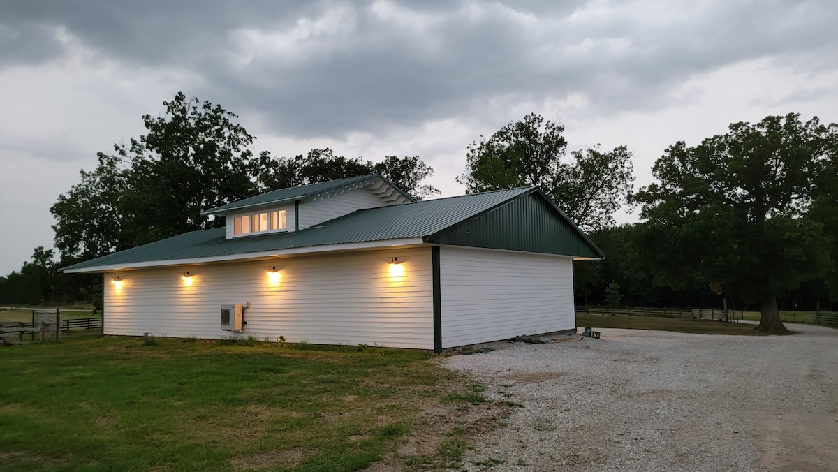 Dieser Getreidespeicher mit einem Schlafzimmer, der in ein winziges Haus im Herzen des Mittleren Westens umgewandelt wurde, bietet den gleichen Komfort wie zu Hause! Du hast den gesamten Getreidespeicher für dich allein, komplett mit einer Küchenzeile und einem kompletten Badezimmer. Du musst Treppen steigen können, um zum Hauptbett zu gelangen, aber es gibt einen Futon auf der Hauptebene. Das Äußere ist dem Korral zugewandt, wo sich unser Vieh und unser Pferd manchmal aufhalten, und Freilandhühnern, die in deine Richtung streifen können, vor allem, wenn sie denken, dass du Essen hast. Wir können eventuell weitere Tiere hinzufügen!