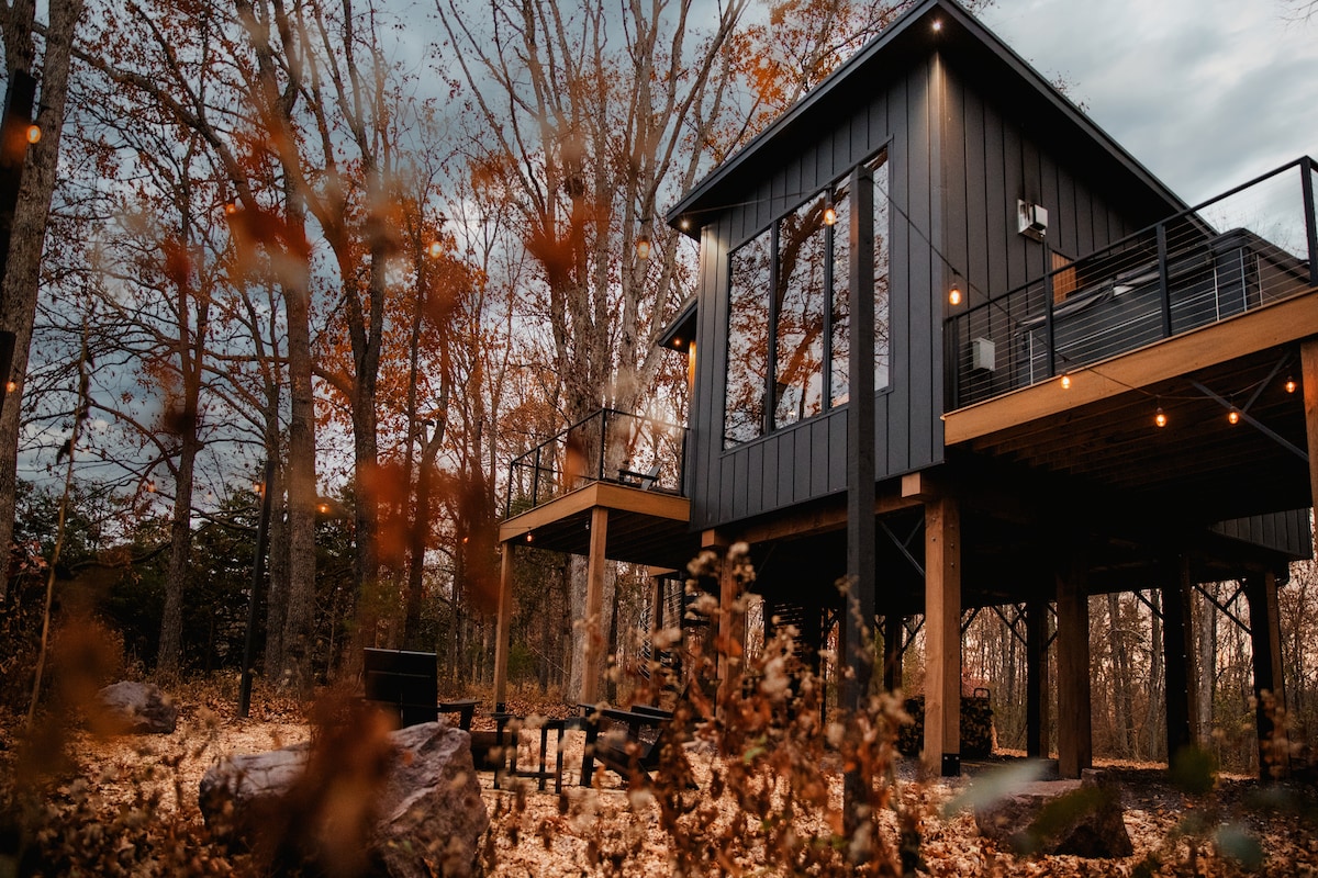 The TreeLoft is a custom built luxury treehouse for two nestled in the eastern part of the Ozark Mountains. Enjoy the gas fireplace for a cozy evening ambiance, a private hot tub under the stars, roasting s'mores over an evening fire or an early morning soak in the free standing tub. All of this is located within 20-45 minute scenic drive of hiking trails, wineries, and restaurants . It is our hope that upon your stay you will be reconnected to nature and to the one you came with.