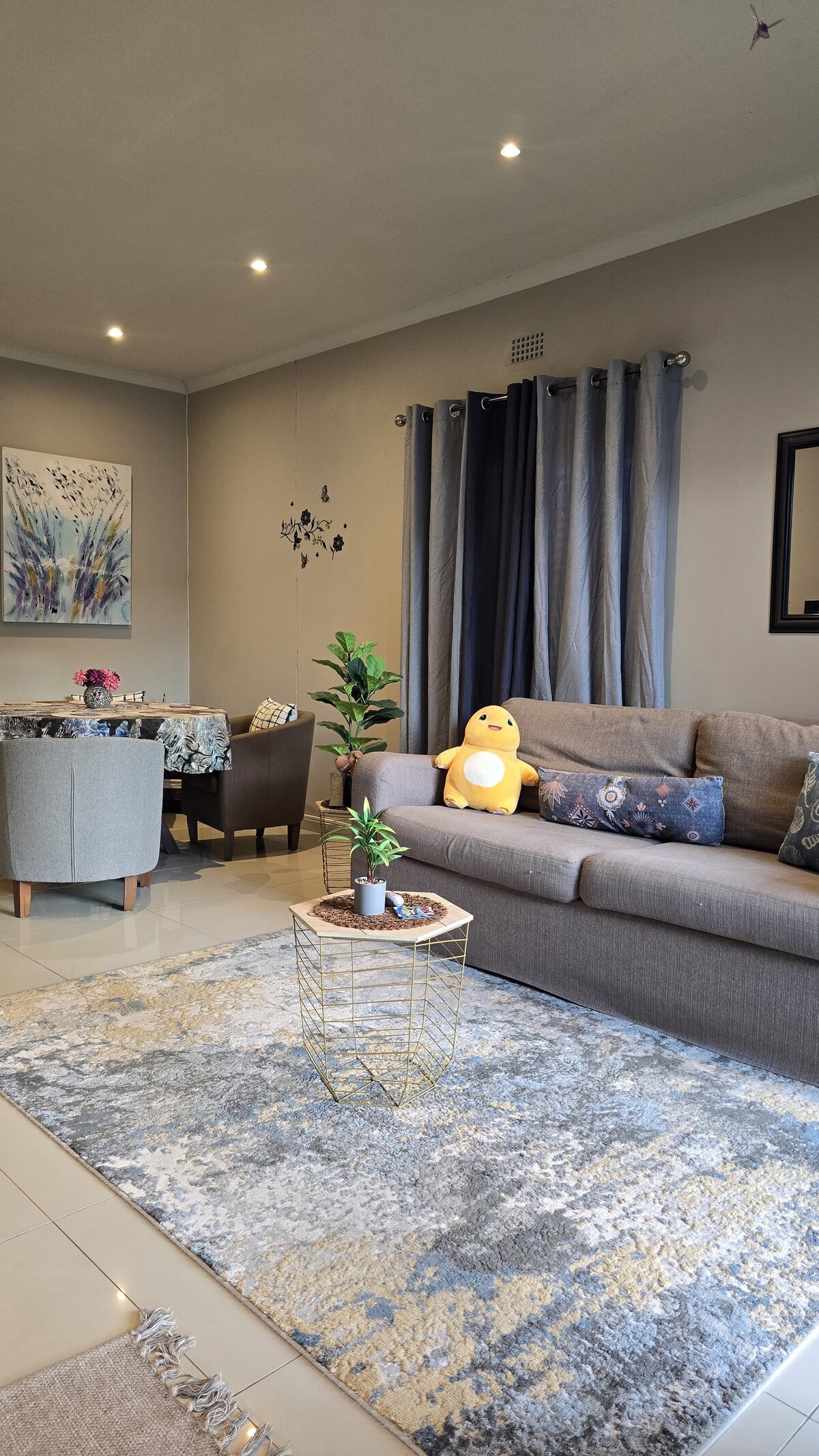 Genieße das charmante Stellenbosch-Landgefühl in diesem warmen und einladenden modernen Stadthaus. Dieser gemütliche Rückzugsort ist perfekt für eine sechsköpfige Familie und ihre Haustiere. Er verfügt über eine voll ausgestattete Küche für Feinschmecker und einen geschlossenen Innenbraai, der sich perfekt für Zusammenkünfte eignet. Das Haus bietet drei einladende Queensize-Betten und ein Babybett auf Anfrage. Mit vier Badezimmern hat jeder seinen eigenen Platz. Genieße die gesamte Unterkunft für dich allein, was sie zu einem idealen Rückzugsort für Entspannung und Familienzusammenführung macht.