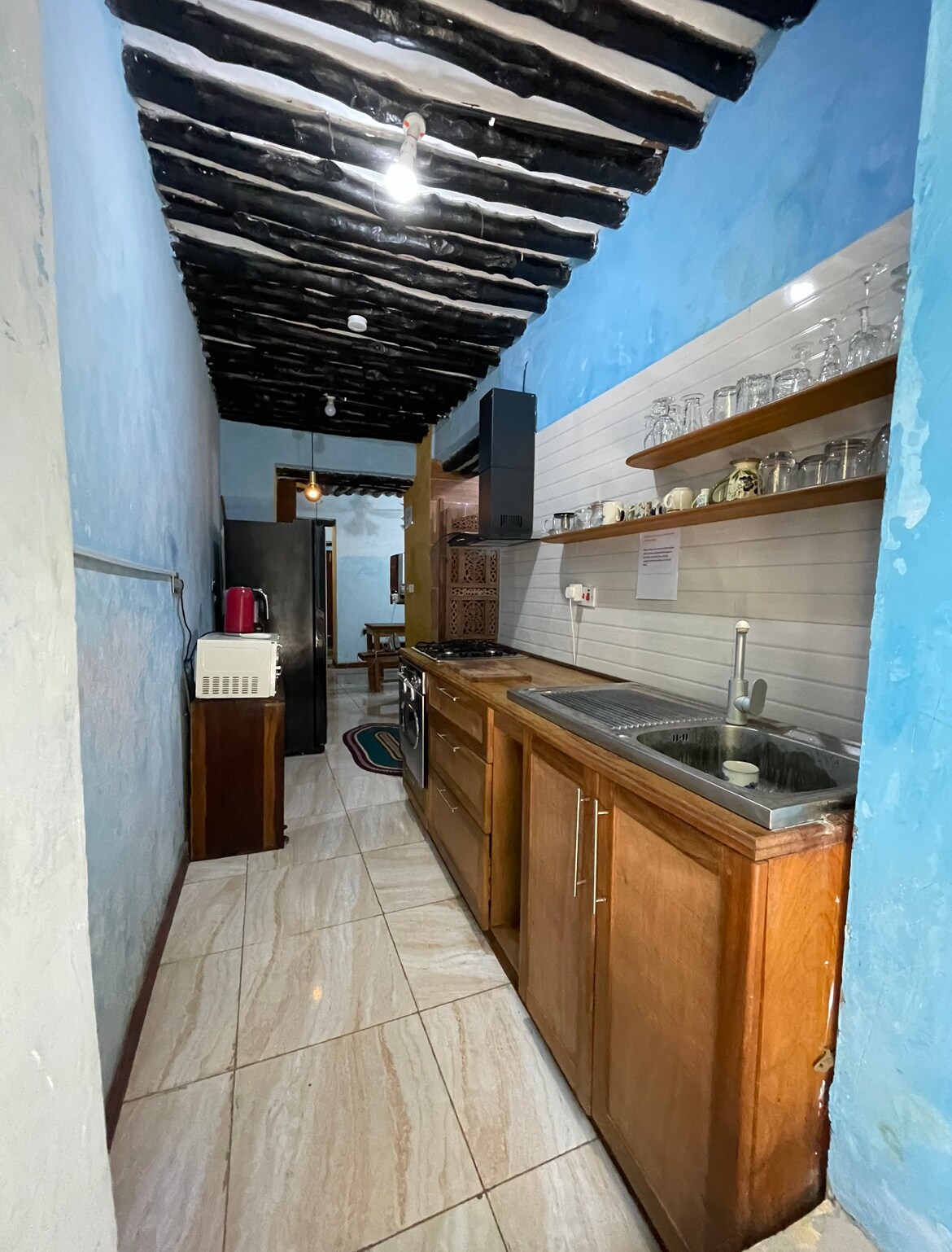 Ein niedliches Haus im Boho-Stil in Sansibar mit einem kleinen Garten. Dieses Haus hat zwei Etagen (durch steile Treppen verbunden), mit Wohnräumen und Küche & Esszimmer im Erdgeschoss, und ein Ankleidezimmer und Schlafzimmer im Obergeschoss. Gut ausgestattete, maßgeschneiderte Küche und praktischer Waschturm (Waschmaschine & Trockner). Es gibt auch einen Smart-TV, so dass Netflix verfügbar ist:) Dieses Haus wurde von einer Ruine zu der wunderbaren Oase der Ruhe renoviert, die es jetzt ist! So tragen Sie zur Erhaltung der von der UNESCO geschützten Steinstadt bei.