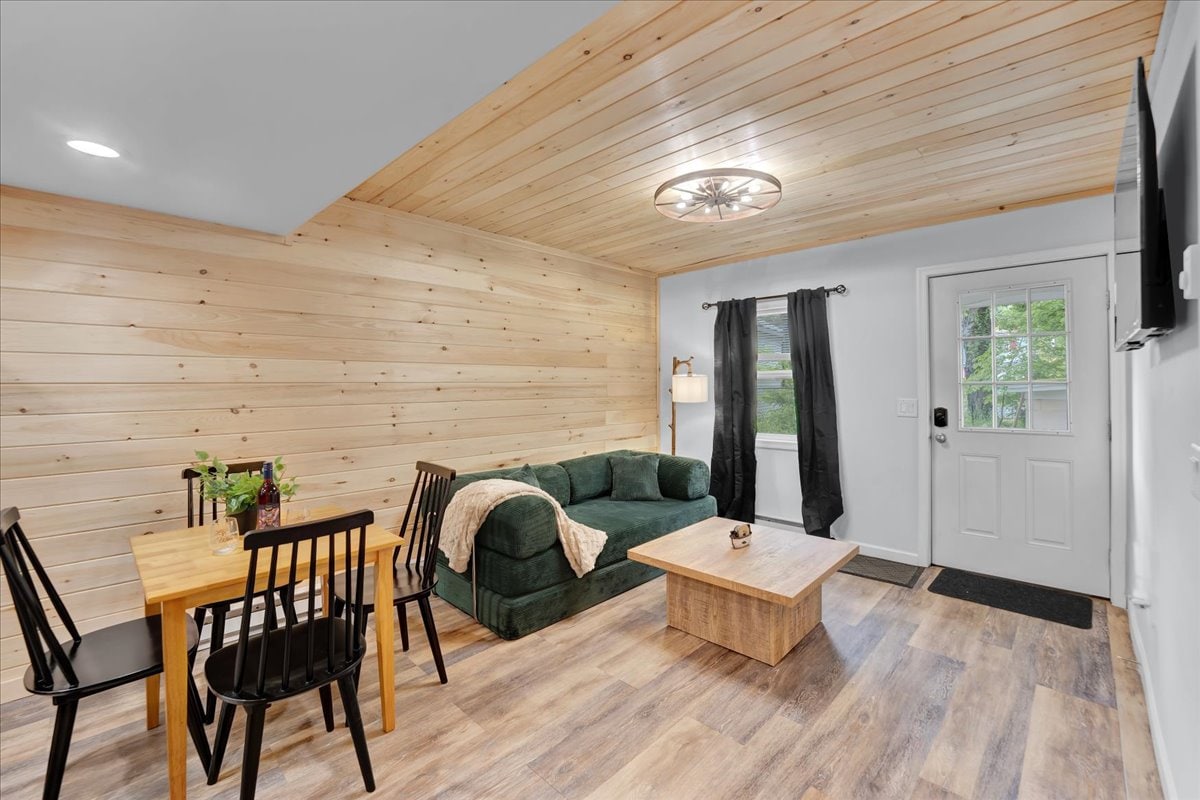 Willkommen im malerischen geräumigen Luxus: diese komplett renovierte Hütte, versteckt auf einem weitläufigen mehr als 200 Hektar großen Grundstück mit privaten Wanderwegen. Das spektakuläre 1 Schlafzimmer verfügt über: gewölbte Decken, brandneue Küche & Geräte, Granit-Arbeitsinsel mit Sitzgelegenheiten, Esszimmer, Gästetoilette & Badezimmer mit ebenerdiger Dusche & Badewanne, Kingsize-Bett, Verdunkelungsvorhänge, große Fenster mit Blick auf die Natur, Smart-TV, Grill, Whirlpool-Option (im Sommer verfügbar) & direkten Zugang zum ruhigen Wald & Wanderwegen.