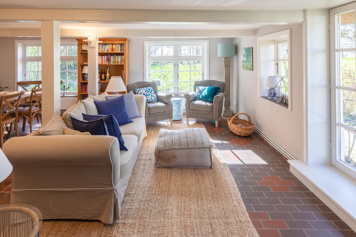 Liebevoll und mit Bedacht haben wir unser Ferienhaus unter Reet eingerichtet- in der Hoffnung, dass Du Dich mit Deiner Familie und / oder Deinen Freunden wohlfühlst- ganz wie Zuhause! Ein neu eingedecktes, ortstypisches Reetdach, die Wiederherstellung der alten Gaube und ein behutsames Vorgehen beim Ausbau , um möglichst viel zu bewahren- das war uns wichtig und prägt dieses einmalige Gebäude. Partygruppen passen leider nicht zu uns!