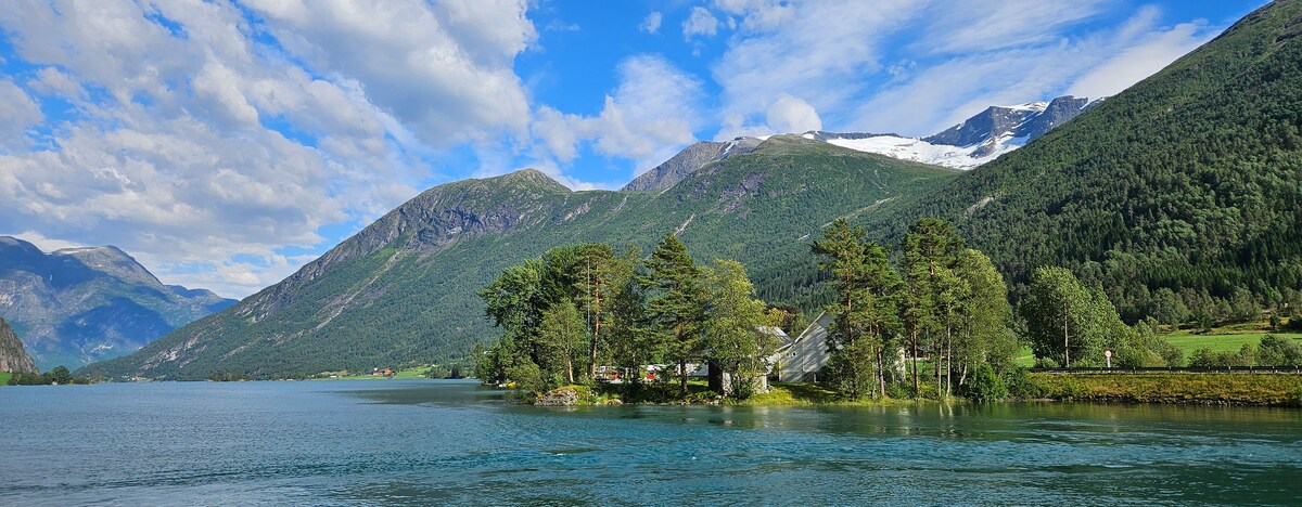 Eine sonnige und gemütliche Wohnung in ruhiger Lage. An der schönen Panorama Road gelegen, mitten in der schönen Natur, in der Nähe der Skipisten ( Fjelli 5,5 km, Ullsheim 18 km) und eines Winterskizentrums in Stryn (20 km). Es gibt viele Möglichkeiten für schöne Spaziergänge und Radtouren. In unmittelbarer Nähe "Freilichtmuseum" Sagedammen mit der Möglichkeit, ein Picknick für die ganze Familie zu machen. Loen mit seinem fantastischen Skylift und Klettersteig (18 km) Briksdalsbren (28 km) und Kjendalsbren (30 km). Ein idealer Ort, um mit der ganzen Familie zu entspannen, sowohl im Winter als auch im Sommer.