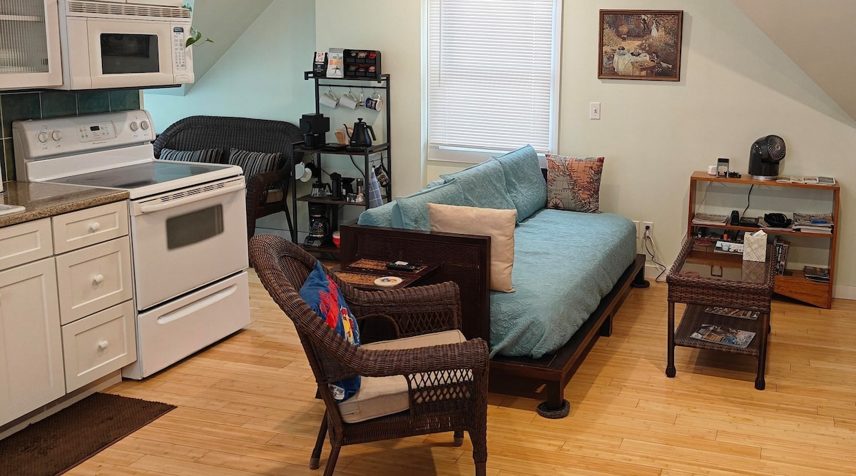 Übernachte in einer gemütlichen privaten Suite; nur wenige Gehminuten von den Einkaufsmöglichkeiten der Hauptstraße, dem Restaurant/Café, der Carnegie-Bibliothek und mehr entfernt! Die Suite bietet ein verstellbares Queensize-Bett, einen Flachbildfernseher, eine Mikrowelle, Geschirr und einen Kühlschrank mit Gefrierfach in Apartmentgröße für all deine Snacks, Leckereien und Getränke. Die Unterkunft bietet einen gemeinsamen Waschtrockner, der zur Verfügung steht. (NICHTRAUCHER-EINHEIT; NACHWEISE von RAUCH oder VAPE FÜHREN ZU EINER GEBÜHR von 150 $. Wenn Sie rauchen, tun Sie dies bitte außerhalb der Tür auf Rasenflächen)