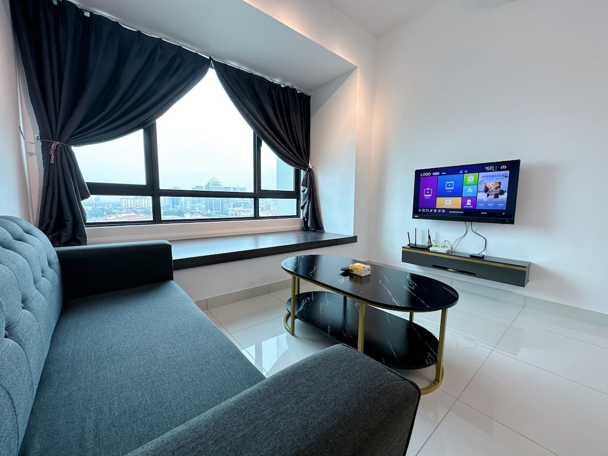 Luxurious Corner 1-Bedroom Apartment with Balcony ✨🏡 🛏️ Bedroom: 1 1.8m King beds 🛏️🛏️ for restful sleep Bedroom air purifier 🌬️ for clean, fresh air High-speed Wi-Fi — 500 Mbps for seamless streaming and work 🌐 Balcony for outdoor relaxation with city views 🌆 🚗 Parking: One dedicated parking space for your convenience Within 5 minutes walk: 🏙️ Sunway 163 🛍️ One Mont Kiara Shopping Mall 🏙️ Plaza Mont Kiara 🎓 Mont Kiara International School
