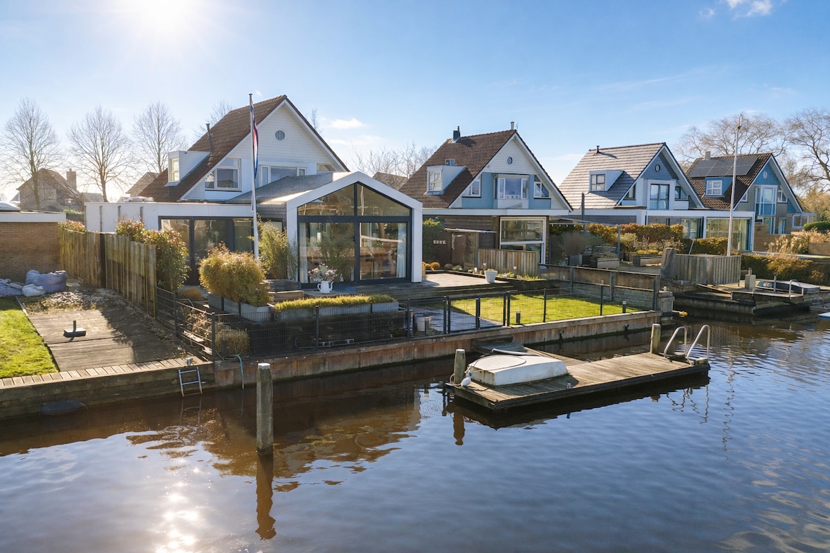 Entspannen Sie sich auf offenen Gewässern, in der Nähe des Sneekermeers mit fantastischem Blick über das Wasser. Dieses renovierte Haus verfügt über 2 Wohnzimmer mit schönen Hängesofas und 2 Fernsehern. Anschließend die Küche mit Bar und Einbaugeräten. Außerdem gibt es einen großen Esstisch für 8 Personen. Es gibt 4 Schlafzimmer im 1. und 2. Stock. Bootssteg von 20 m. * Das Haus befindet sich in einer ruhigen Gegend und ist daher nicht für Partygruppen geeignet! * Sauna, Whirlpool, SUP und Ruderboot gegen Aufpreis zu aktivieren.