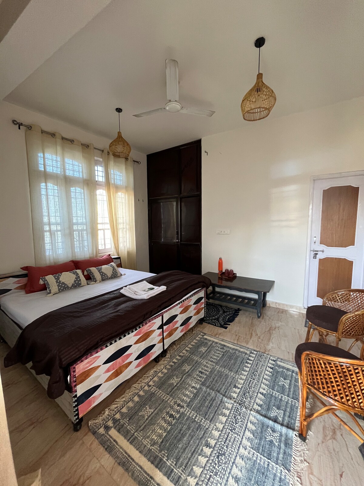 Tucked amid orchards and quiet gardens near Baijnath, Baaggechi is a refined Himalayan home overlooking the Dhauladhar range. Wake up to birdsong, breathe some of India’s cleanest mountain air, and spend unhurried days with valley views, home-cooked farm-fresh meals, cozy fires, and golden sunsets. A thoughtfully designed home for those who value beauty, stillness, and warm, attentive hosting. Guests have the option to book individual rooms as well - please reach out to the host for details.