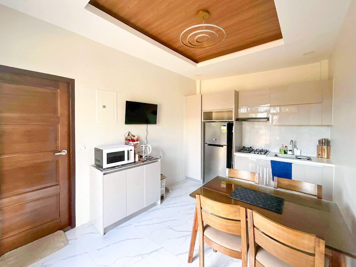 Stay, Relax & Explore in this brand-new, gated 2-bedroom home located in the heart of the city. The spacious Master Bedroom features a king bed, pull-out single bed, and couch, sleeping up to four guests. The Deluxe Room offers a queen bed for two. Enjoy strong Wi-Fi, heated shower, and secure gated parking. Cafés, bakery, and car wash are steps away, with KCC Mall just a mile away. Airport transfers available.