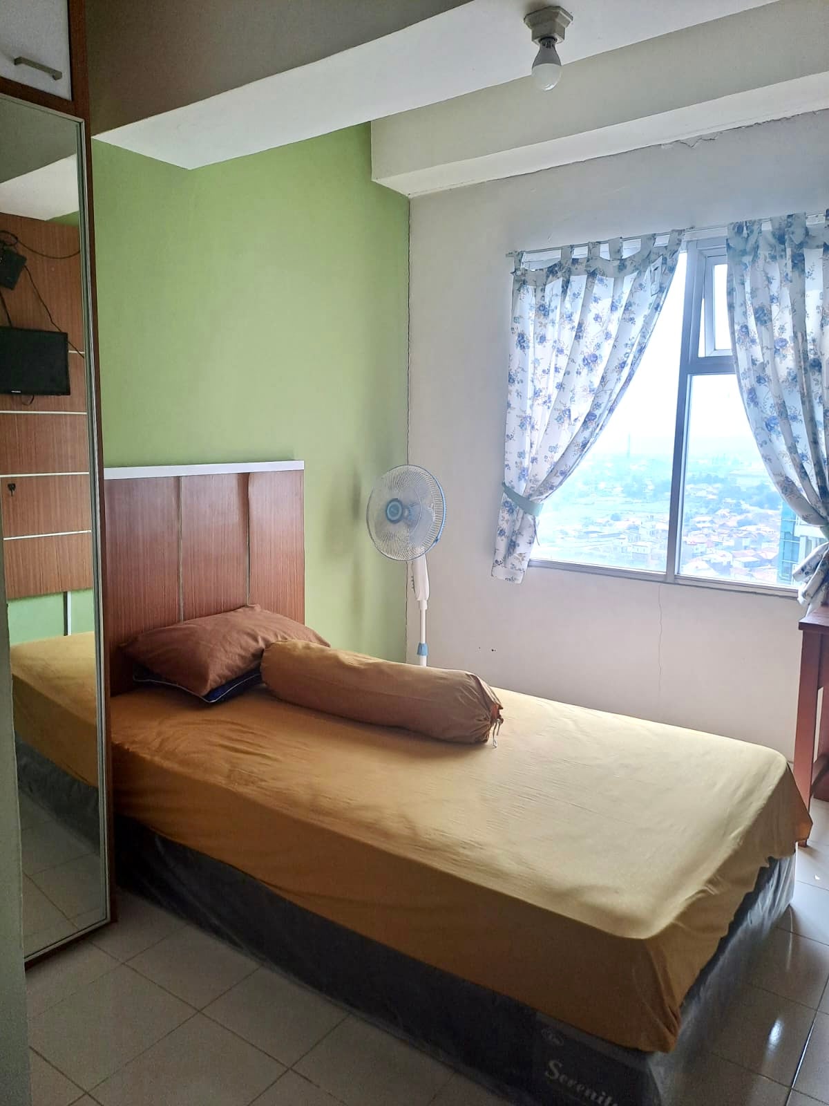 Lantai 20, view belakang apartemen Luas: 20 meter persegi Akses: -Dekat dengan IPDN, Unpad, ITB, Ikopin -Dekat dengan Tol Cileunyi -Dekat dengan pusat perbelanjaan Jatos, Griya, dll. -Terdapat mini market -Dekat dengan Domino’s Pizza, Bakso Boedjangan, Jonas Photo, dll. Harga: Rp20.000.000,- /tahun Rp10.000.000,- /6 bulan Rp2.300.000,- /bulan Rp1.000.000,- /minggu sudah termasuk biaya service charge. (Diluar biaya listrik dan air)