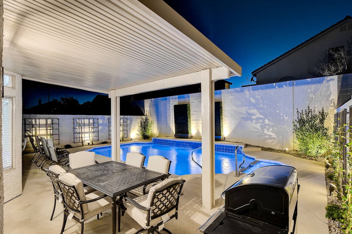 Zeitlose 3-Zimmer-Vegas-Unterkunft mit Pool und geräumigem Hof