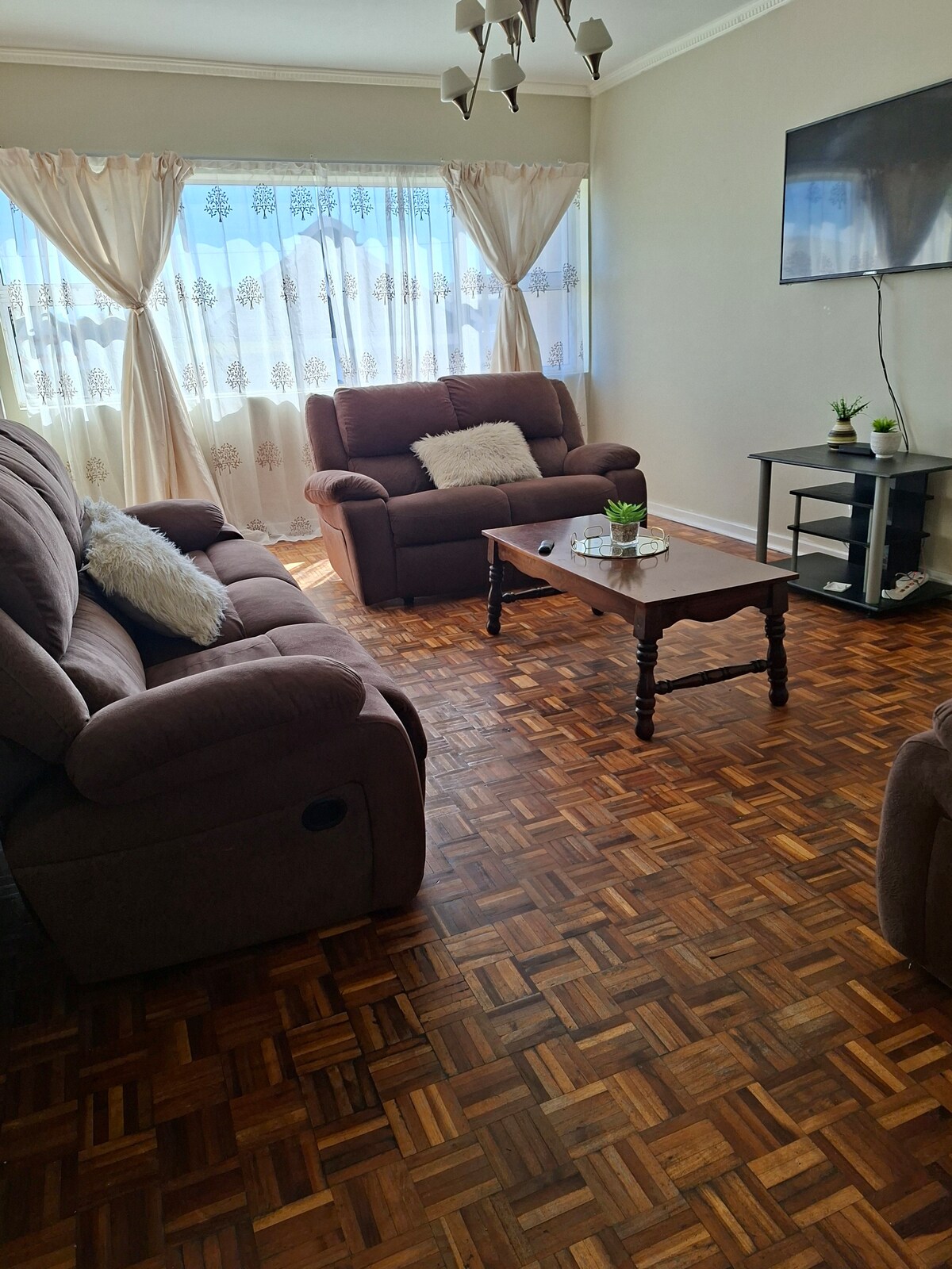 Das Nest ist eine exklusive Wohnung, die 5 Minuten vom Flughafen entfernt liegt. Inklusive einem privaten Eingang, sicheren, abgeschlossenen und videoüberwachten Parkplätzen für 2 Autos, einem bequemen Super-Kingsize-Bett, einem schönen Blick über den Park und einem privaten, eingebauten Braai-Bereich. Die neue Küche verfügt über einen Geschirrspüler, eine Waschmaschine, eine Mikrowelle, einen Gasherd und einen Elektroherd. Ausstattung: Klimaanlage, WLAN, wandmontierter Smart-TV (Netflix, Youtube und Web), Surround-Sound und Badezimmer mit Dusche und separater Badewanne. Perfekt für Geschäftsreisende oder Urlauber.