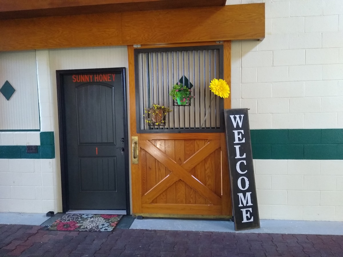 Erleben Sie rustikalen Charme und modernen Komfort in unserer neu gestalteten Sunny Honey Charm Suite auf der Starstruck Farm. Dieses Refugium im Boutique-Stil verfügt über handgefertigte Holzarbeiten, ein gemütliches Queensize-Bett, ein eigenes Badezimmer mit Spa-ähnlichen Akzenten und eine Kaffeebar im Bauernhausstil. Das in einem umgebauten Pferdestall gelegene Hotel verbindet Vintage-Wärme mit stilvollem Flair – perfekt für romantische Kurzurlaube, Solo-Ausflüge oder Wochenenden voller Musik in der ländlichen Gegend von Tennessee. Dies ist eine Unterkunft ohne Haustiere!