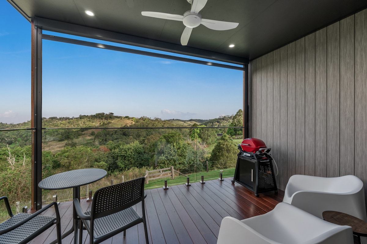 Lehne dich zurück und entspanne dich in diesem ruhigen, stilvollen Raum. The Ridge at Maleny's neueste, gehobene Villen mit einem Schlafzimmer, die warme, natürliche Oberflächen, Holzböden, ein Bad, einen geräumigen Wohnbereich und alles bietet, was du für einen angenehmen, erholsamen Kurzurlaub benötigst. Entspanne dich auf deiner privaten Terrasse und genieße den schönen Gartenblick und die ruhige Einsamkeit der ruhigen Umgebung und der frischen Bergluft.