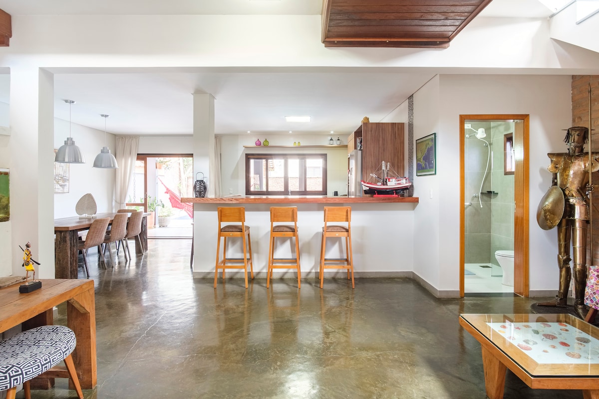 Dieses stilvolle Haus ist ideal für diejenigen, die Komfort, Gemütlichkeit und schöne Strände suchen. Das Thema ist indigen (Sie werden sicherlich viele Eingeborene im Haus sehen). Die Lage ist ein weiterer Punkt, der auffällt, da sie sich in einer Wohnanlage mit nur 10 Häusern und in einer äußerst privilegierten Region befindet, die den Zugang zu mehreren Stränden, Wanderwegen, Wasserfällen, Sehenswürdigkeiten, Bootsfahrten zu Inseln und tollen Bars/Restaurants erleichtert.