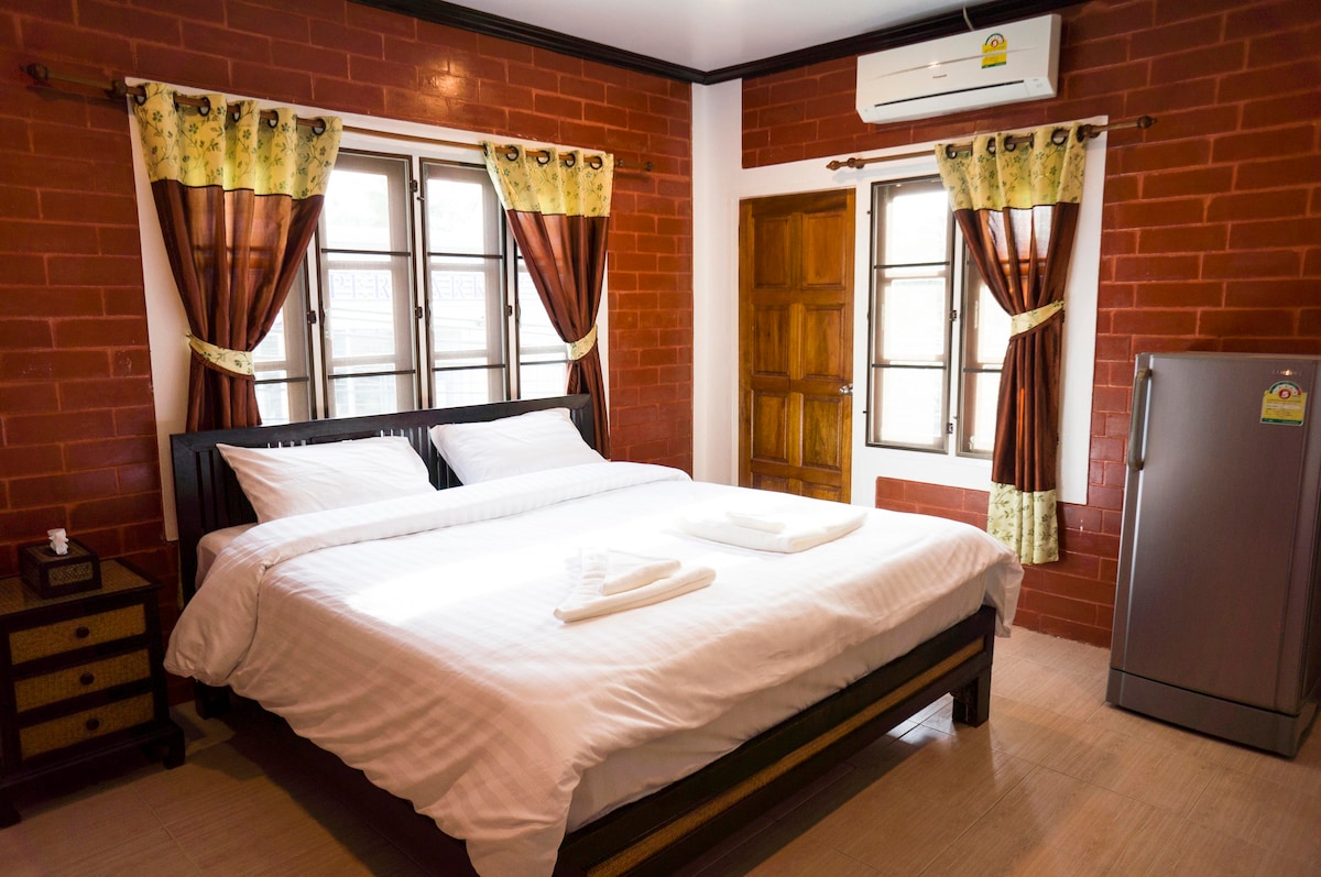 This room is facing to the back of our property with balcony. Space is around 6x5m = 30 m2. 6 foot king size bed with comfy spring mattress. Air conditioner. Small refrigerator. Flat screen TV connected to satellite channels. Our wifi is connected to 500/100 mbit fiber connection from AIS internet provider and has fast international speed 24 hours.