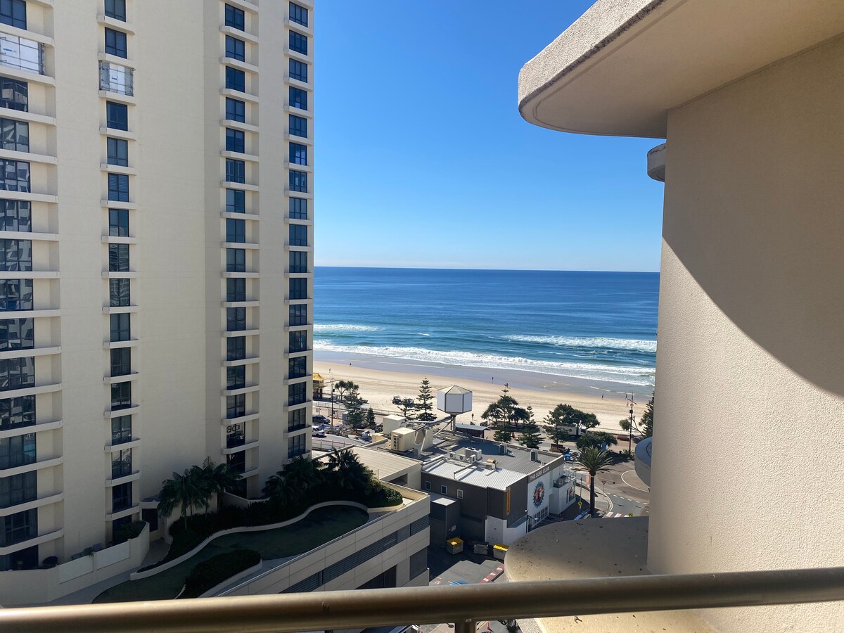 Beginnen Sie den Tag mit Blick auf das Meer und beobachten Sie den Sonnenaufgang!! Es wird dich inspirieren, aus dem Bett aufzustehen und deine Zehen in den weichen weißen Sand zu versenken Großer Balkon, um den Meerblick zu genießen - Direkt gegenüber vom Surfers Patrolled Beach - Einkaufszentrum Paradise Center für all deine Einkaufsmöglichkeiten & Cavill Road Spectacular! -Kraftmärkte jeden Mittwoch, Freitag und Samstag. - Restaurants & Bars Dieses Studio-Apartment ist voll ausgestattet Genieße alles, was Surfers zu bieten hat Schlafsofa für ein Kind