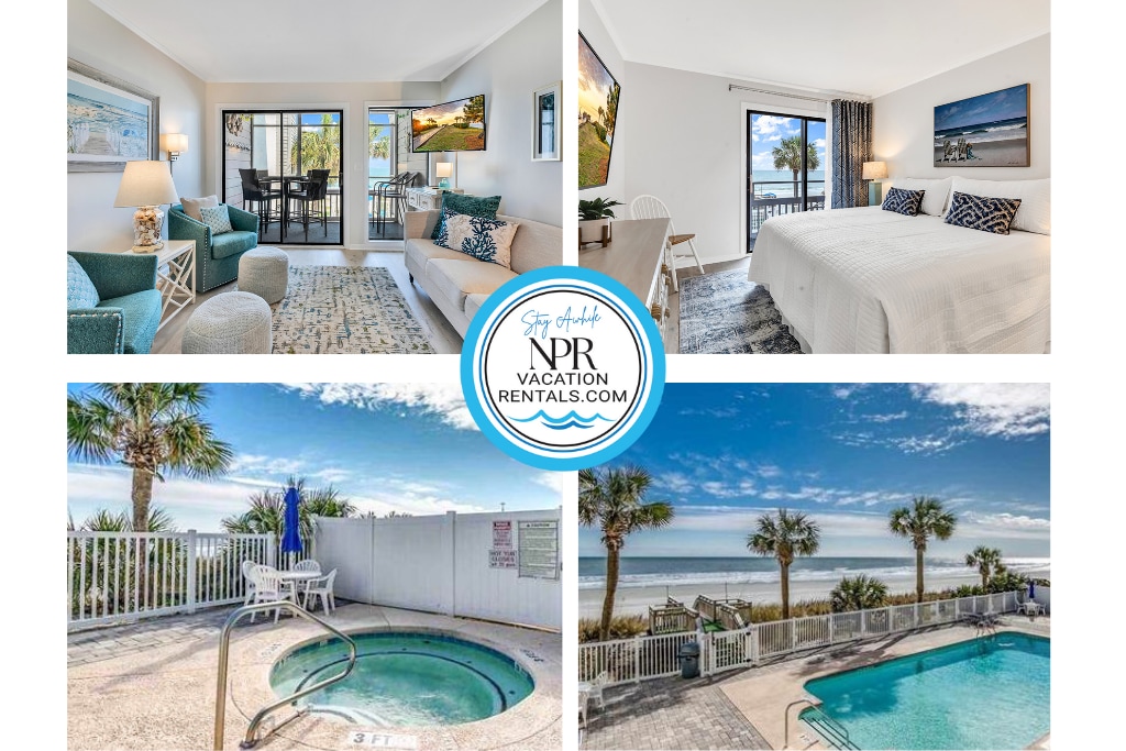No shoes needed! Step right onto the beach from this bright and airy 1 bed, 1 bath condo. The direct oceanfront space comfortably sleeps 4 and is in the perfect location just 1/4 mile from Garden City Pier. This popular, yet quiet building offers a peaceful and serene getaway for families, couples or friends. Enjoy free parking, a full kitchen & beach supplies you can sit back and relax. The location is away from the hustle and bustle yet close enough to enjoy all the grand strand has to offer.