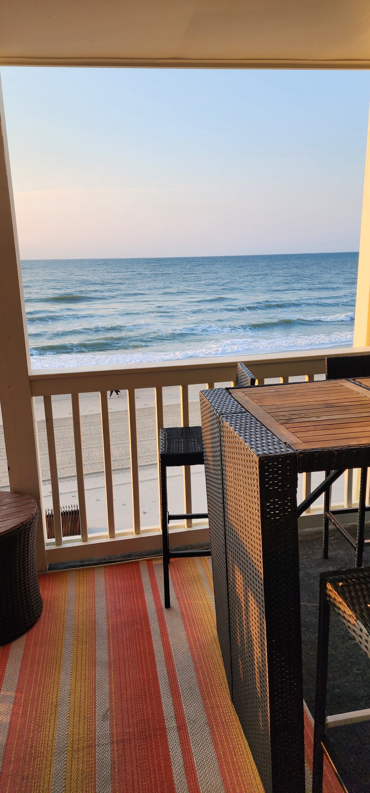 Vorgestellt auf HGTVs „Beach Front Bargain Hunt“!- Schöne, kürzlich renovierte Eigentumswohnung direkt am Strand und am Meer! Sowohl das Wohnzimmer als auch das Schlafzimmer haben Meerblick. Es gibt ein Kingsize-Bett im Hauptschlafzimmer und ein Kingsize-Bett im 2. Schlafzimmer. 3 Fernseher, einer in jedem Zimmer und ein großer Fernseher im Wohnzimmer. Es gibt ein Murphy-Bett und ein Schlafsofa. In der Nähe des neuen Piers, von Einkaufsmöglichkeiten, Restaurants und Golfplätzen. Es gibt 1 Überwachungskamera auf dem Gehweg, der zur Eingangstür führt. Sie ist immer an.