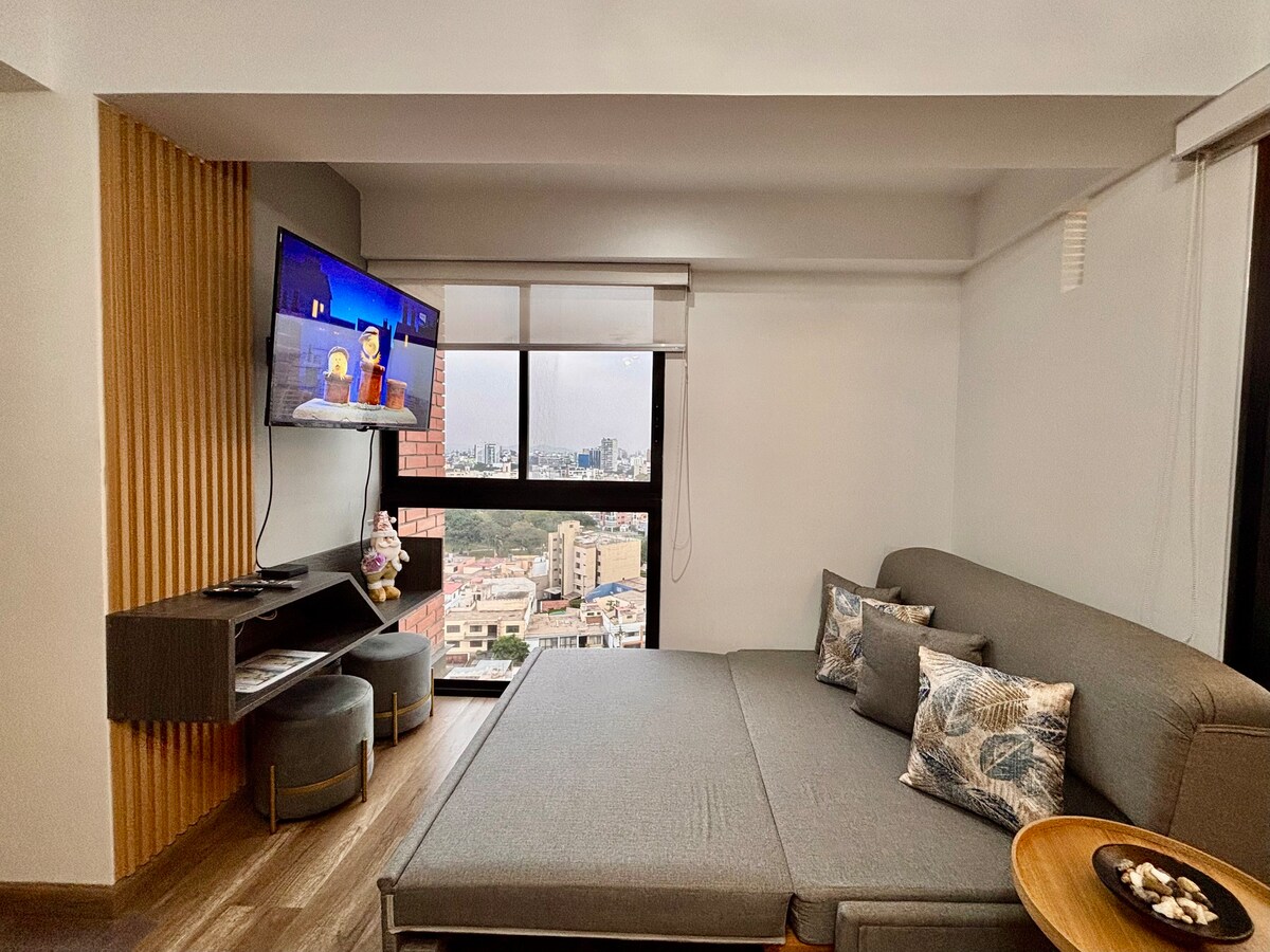 Entdecken Sie diese gemütliche 1-Zimmer-Wohnung in einer der sichersten Gegenden von Lima, nur einen Schritt von Miraflores entfernt. Ideal für Reisende, die Komfort und eine ausgezeichnete Lage suchen. Sie verfügt über ein Wohnzimmer, eine ausgestattete Küche, Highspeed-WLAN sowie einen schönen Balkon, der ideal zum Entspannen ist. Genießen Sie die Nähe zu Restaurants, Cafés und Parks, mit einfachem Zugang zum Zentrum von Miraflores oder zu jedem Teil des Stadtzentrums. Perfekt für kurze oder lange Aufenthalte. Du wirst dich wie zu Hause fühlen!