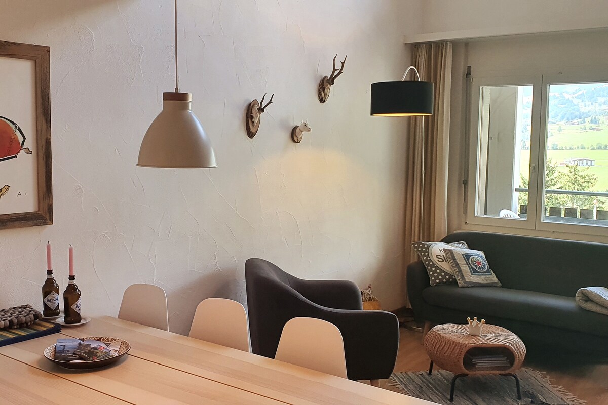 Schöne, gemütliche und ruhige 2-Zimmer Wohnung (max. 4 Personen), viel Charme, in 2-Familienhaus. Tolle Aussicht, WiFi, Pp vor dem Haus, Tv, kleine Stereoanlage und Waschmaschine. Ein grossartiges Wintersportgebiet. Skilanglaufloipe vor dem Haus. Bergbahn in 5 Minuten mit dem Auto erreichbar. Im Sommer ideal zum Wandern, Velofahren, Golfen, Schwimmen, Tennis, Klettern etc. Die Wohnung ist gemütlich und liebevoll eingerichtet. Es fehlt an nichts fürs Abschalten und Ferien machen.