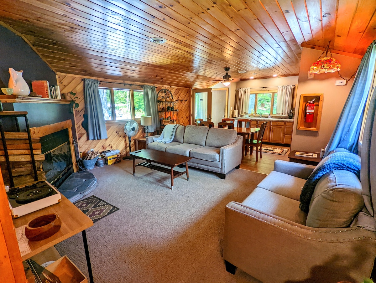 Entspann dich in dieser besonderen und ruhigen Unterkunft. Das gesamte Haus wurde neu renoviert und verfügt über durchdachte Details und ein eklektisches Ambiente. Zu den Annehmlichkeiten gehören ein Holzofen, eine Sleep-Number-Matratze, ein Viking-Gasherd/Backofen, eine Terrasse mit Blick auf den Fluss und einem Propangrill, ein überdachter Carport-Eingang und ein 180* Flussblick oben auf dem Grundstück! Wir freuen uns sehr, Gäste begrüßen zu dürfen und hoffen, allen ein unvergessliches Erlebnis zu bieten. Gut erzogene Hunde sind auf Anfrage willkommen. Holzofen 25 $/Nacht.