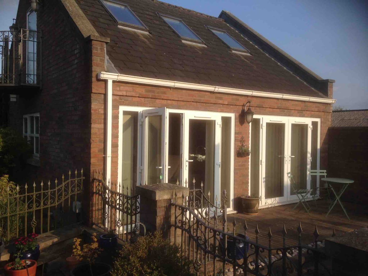 Ein ruhiger Rückzugsort, der Ruhe und Privatsphäre in einem freistehenden Gebäude in unserem großen Garten bietet. Abschließbares Eingangstor mit Schlüssel bei der Ankunft verfügbar. WLAN-Zugang ist inbegriffen, den die meisten Gäste als vollkommen ausreichend empfunden haben. Frühstück mit Müsli, Brot, Milch und (falls gewünscht) Würstchen, Speck, Eiern usw., damit du dein eigenes zu einer Zeit zubereiten kannst, die dir passt. Obwohl es keine voll ausgestattete Küche gibt, haben wir einen kleinen Backofen zur Verfügung gestellt.