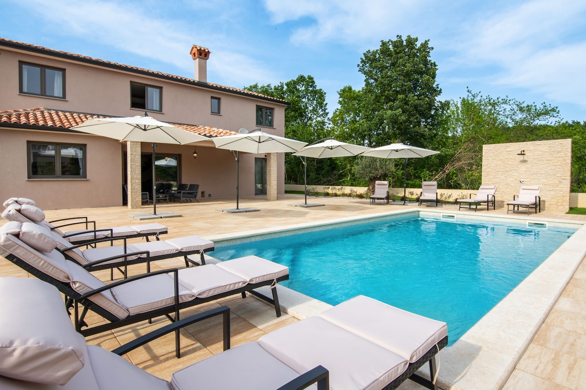 Entspanne dich mit deiner Familie und deinen Freunden in dieser komfortablen Unterkunft, einer neuen Villa, die 2022 mit einem 32 m² großen Pool erbaut wurde und nur 2 km vom Strand und dem Meer entfernt liegt. Die Villa Gondolika **** verfügt über: 3 Zimmer 3 Badezimmer Toilette + Waschküche Küche Wohnzimmer Swimmingpool Grill Privater Parkplatz für 3 Autos. Meer- und Bergblick Das Haus befindet sich im ruhigen Ort Gondulići, in der Nähe der Altstadt von Labin, wo du Märkte, Restaurants und Geschäfte findest. In der Nähe des Hauses gibt es Wander- und Radwege.