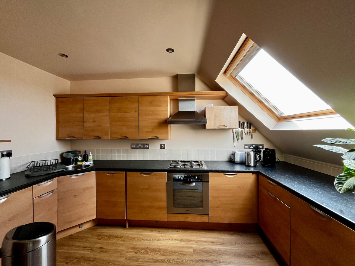 Genieße deinen perfekten Kurzurlaub in dieser preisgekrönten 2-Bett-Penthouse-Wohnung mit 180-Grad-Meerblick im Herzen der ruhigen Gegend von Alum Chine von Bournemouth, nur wenige Gehminuten vom Strand entfernt. Das Anwesen verfügt über zwei Essbereiche, von denen einer auf dem großen Balkon mit Blick auf den Strand von Bournemouth liegt, und einen maßgeschneiderten Holzofen für die Winternächte. Die offene Küche führt in ein gemütliches Wohnzimmer, in dem du die Sky-Glas-TV-Unterhaltung über superschnelles WLAN genießen kannst.