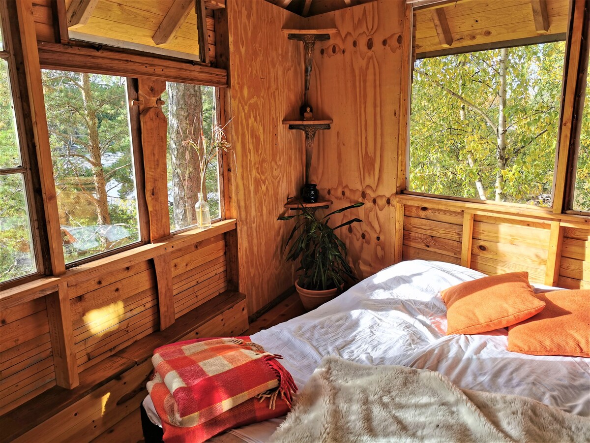Dies ist der perfekte Ort für Glamping während einer Kajake-Tour in den Archipel von Gryt. - BITTE LESEN SIE DIES VOR KONTAKT/BUCHUNG: Es ist ein wunderschönes Baumhaus auf einer Insel. Hinweis: Der Zugang erfolgt nur mit dem Boot oder Kajak. Das Baumhaus ist ca. 100m von der Anlegestelle auf der Insel und ca. 50m von unserem Haupthaus entfernt. Sie müssen Ihren Weg hierher selbst planen, je nachdem, wo Sie anfangen. Schauen Sie sich die Karte an und zoomen Sie hinein und heraus, um den Standort zu sehen. Du bringst deine eigene Ausrüstung und Bettwäsche mit.