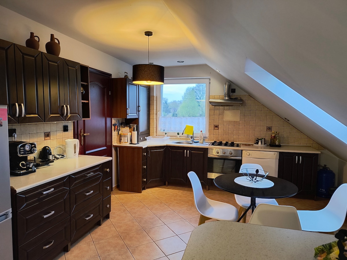 Luxurious attic escape in Żagań. This exceptional apartment, located just a few steps from the train station and a picturesque park, has been created with your uncompromising comfort in mind. We pay attention to every detail - from high-quality bedding and comfortable mattresses to a fully equipped kitchen. We have prepared a welcome gift and unique experiences for you to enhance your stay. Your satisfaction is our priority. (Please note! The apartment is located on the 3rd floor.)