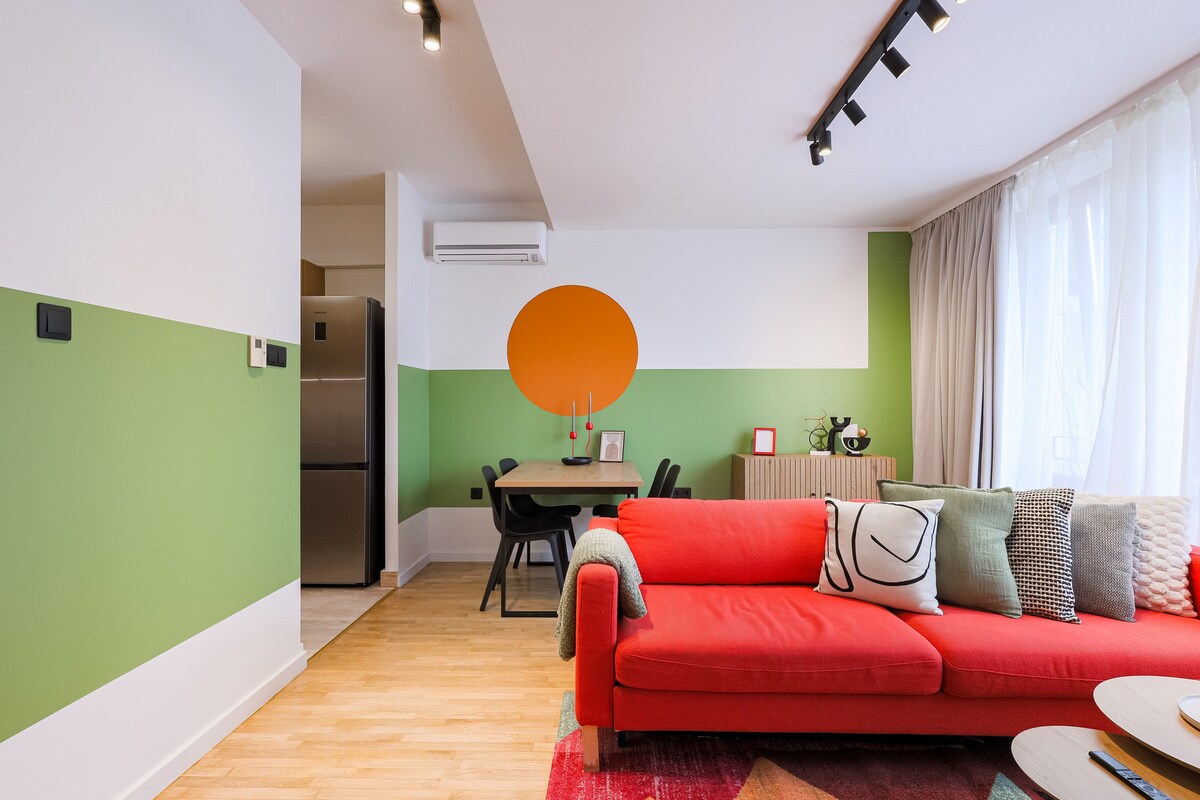 The stylish apartment has been fully renovated with modern design in a brand new building. The apartment is on the 4th floor with an elevator in a quiet and calm area in the building. Located in one of the most fashionable areas of Budapest with city’s best bars, pubs, restaurants, museums, galleries, designer clothing boutiques, shops and historical architecture at your doorstep. The apartment has one bedroom, a bright living area with fully equipped kitchen and one bathroom.