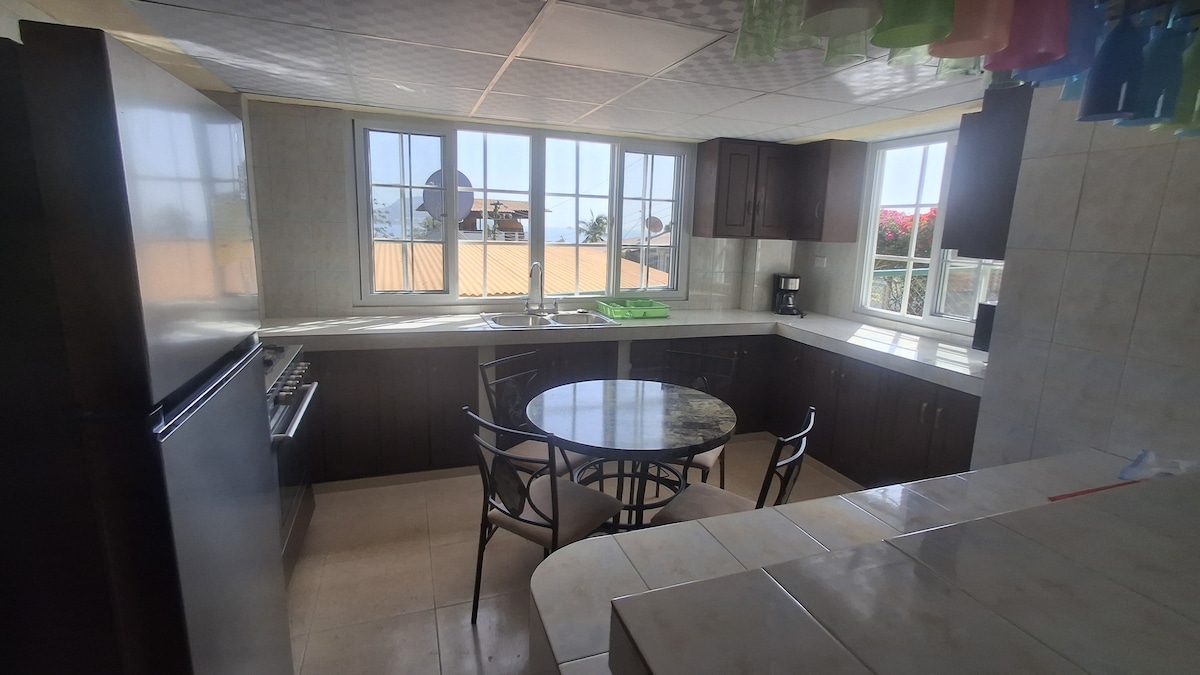 Casa Rosie ist eine wunderschöne Villa auf der Insel Taboga mit einer intimen Atmosphäre und spektakulärem Blick auf das Meer. Der perfekte Ort für Paare, kleine Gruppen und Familien, um sich zu entspannen und magische Erinnerungen zu schaffen! Mit großartigem WLAN, einer voll ausgestatteten Küche, 3 einladenden Schlafzimmern und einem geräumigen und dennoch persönlichen Ambiente ist die Casa Rosie dein zweites Zuhause. In jedem Aufenthalt ist die kostenlose Abholung und der Rücktransport zum Fährterminal inbegriffen – bitte teile uns die Details deiner Ankunft mit.