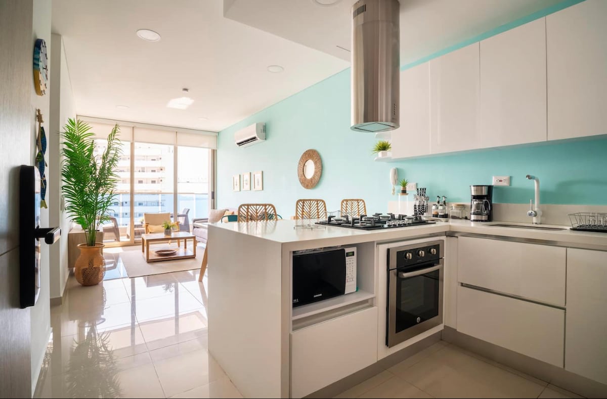 ¡Vive la experiencia del Rodadero Sur a un paso de la playa! Vista al océano y a la Sierra Nevada, ideal para relajarte. Wifi fibra óptica y apartamento totalmente equipado. 🌴 Incluye 4 sillas y nevera portátil para la playa. • Mini Market en el primer piso. 📍 Sector residencial tranquilo, a 14 minutos del aeropuerto. ✨ Ideal para familias o parejas que buscan confort y buena ubicación. 🌴 Santa Marta tiene clima cálido, por lo que no hay calentador de agua; la ducha es a temperatura ambiente.