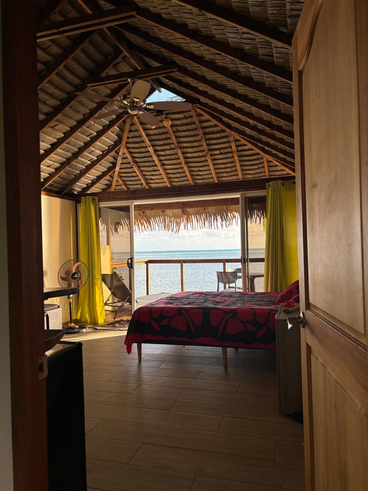 Ia Ora Na! Wir bieten Ihnen ein neues Haus auf Stelzen von 106 m². Die Innenstadt ist 10 Minuten mit dem Auto entfernt. Kleine Lebensmittelgeschäfte und Restaurants in der Nähe. Nutzen Sie Kajak und Paddel, um in 15 Minuten das Motu Tahunaoe zu erreichen, das direkt gegenüber liegt. Entspannen Sie sich am Ende des Tages und bewundern Sie die wunderschönen Sonnenuntergänge von Mirimiri mit Blick auf die Insel Bora Bora.