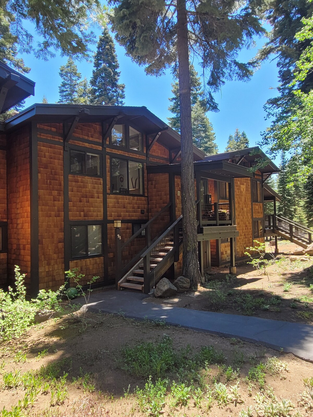 1 Stunde vom Flughafen Reno 2 Meilen von Tahoe City(Dollar Hill) entfernt. Schlafzimmer mit Queensize-Bett im Obergeschoss/Loft. Voll ausgestattete Küche. 2 Fernseher. Tennisplatz, Pool (nur im Sommer), Whirlpool, Clubhaus/Pool-Tisch/Pool im Sommer/Umkleideräume. 1/2 Meile zu den Stränden von Lake Tahoe. In der Nähe der wichtigsten Skigebiete - 10 Minuten nach Squaw/Alpine, 20 Minuten nach Northstar, Homewood oder Diamond Peak. Mountainbiken und Langlaufen 5 Minuten vom Standort in der Saison. Eklektisches Kunstwerk. Convenience Store auf der Straße...Hundefreundlich.