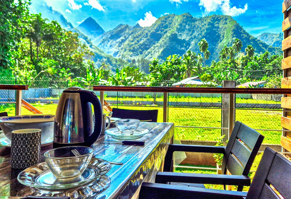 Come and enjoy an unforgettable experience in the majestic Opunohu Bay. Still unspoiled by tourism and wild. Nestled between the lagoon and Mount Rotui, this accommodation will captivate you with its Polynesian style. You will enjoy the beach for relaxation, snorkeling, tropical fish, rays, turtles and kayaking. Panoramic view of the lagoon with its pass, a delight for surfers. Mount Rotui, the Magic Mountain, the "Shark's Tooth" encircle the bay and the valley for beautiful hikes.