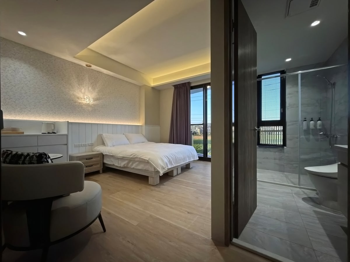 2-Personen-Suite mit hoher Decke, in der Nähe des Taichung High-Speed-Railway-Stations, mit den Standards eines Sternenhotels, mit eigenem Bad, geräumig und hell, mit einer außergewöhnlichen Qualität und einem hohen CP-Wert