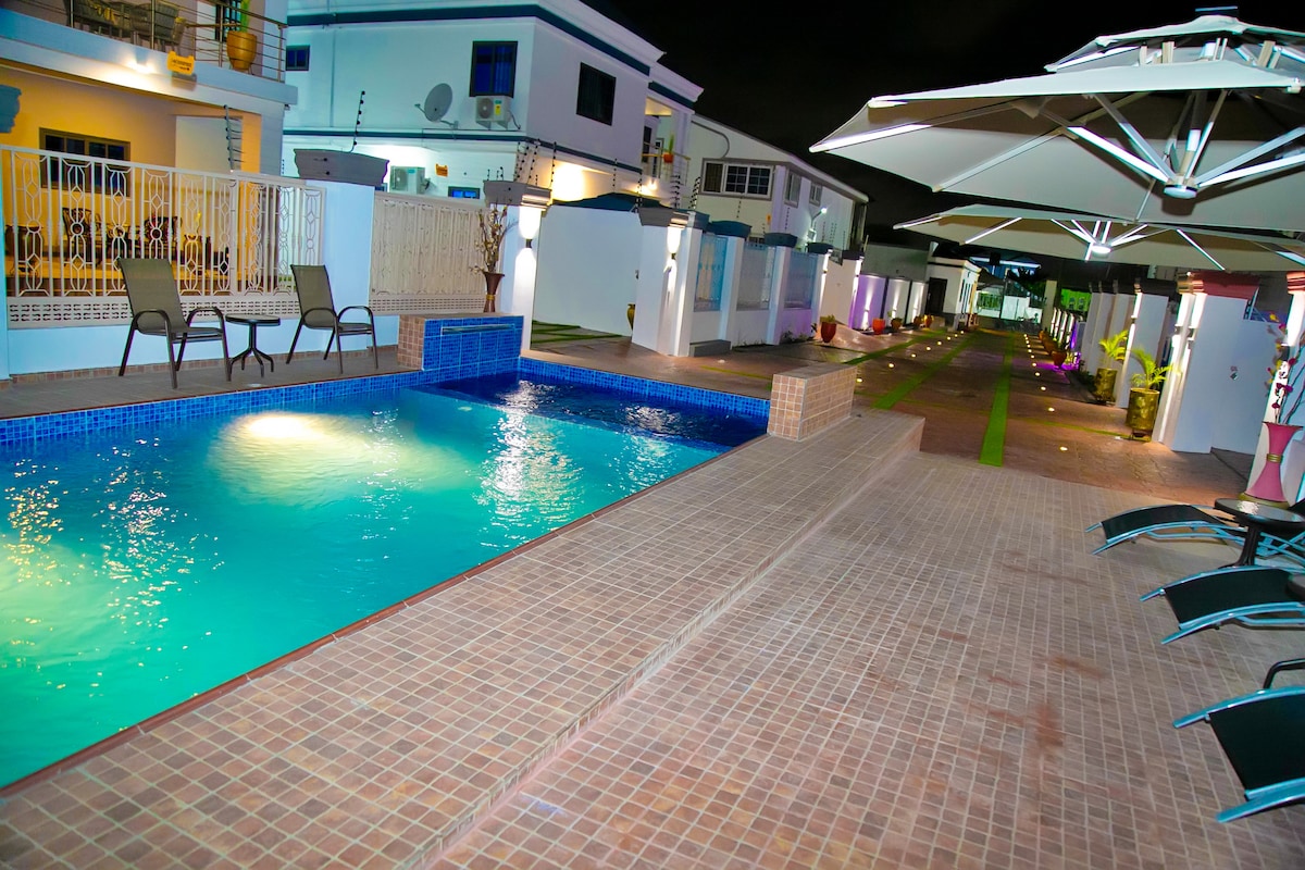 Welcome to your private resort in Accra. Nubian Villa offers a private infinity pool, a 36-jet hot tub with its own bar and hanging chairs, a fully equipped gym, and curated chef services — all within a secure, luxury 4-bedroom residence. Designed for families, executives, and discerning travelers, the villa combines privacy, comfort, and seamless service — including airport pickup and a standby silent generator for uninterrupted power.