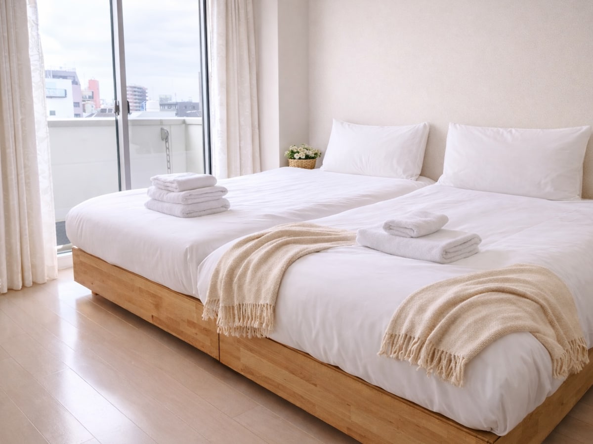 -Cure Skytree- Geöffnet im Mai 2025☆ 4 Minuten vom Bahnhof Honjo Azumabashi entfernt. 7 Minuten vom Bahnhof Asakusa entfernt Abouy 50 Minuten vom Flughafen Haneda, ca. 1 Stunde und 15 Minuten vom Flughafen Narita entfernt. [Zugang zu Sehenswürdigkeiten] ~ Mit dem Zug von Honjoazumabashi Sta ~ -Asakusa Station: 1 Minute -Oshiage Station (Skytree): 1 Minute -Tokyo Station: 23 Minuten [Hinweise] *Check-in: 15:00 Uhr *Check-out: 10:00 Uhr *Dieses Zimmer bietet Platz für 3 Personen. Bis 3 Personen können bleiben.