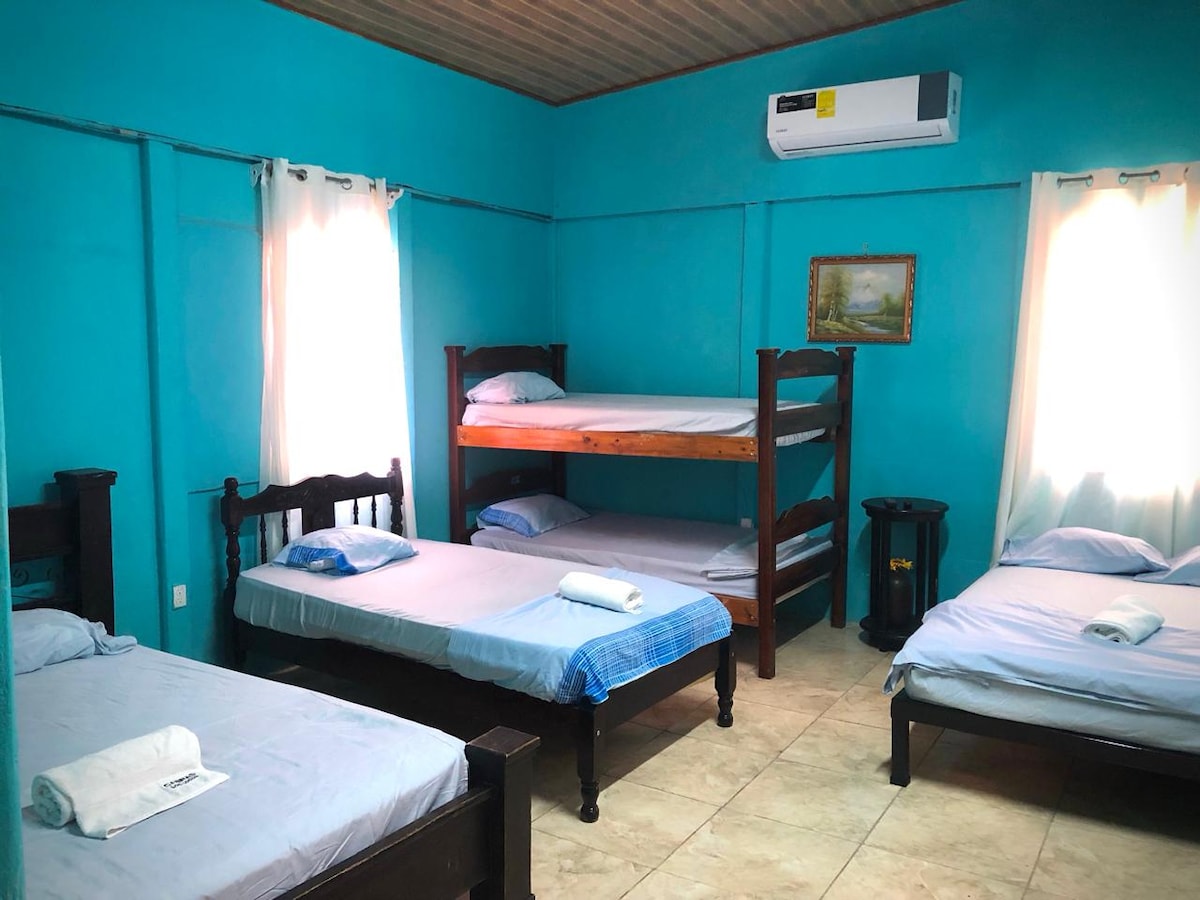 La habitación tiene cama queen, Aire acondicionado, televisor con firestick para acceder a servicios de streaming con tu cuenta propia(no tv cable) y baño privado. La cocina pequeña privada cuenta con lo necesario para hacer comidas sencillas. Ubicado en playa chiquita, frente a carretera principal, 300 mts de la playa y supermercado, 4 km de Puerto Viejo centro y 2 km de Punta Uva. Cuenta con parqueo privado. Orgullosamente Costaricenses🇨🇷