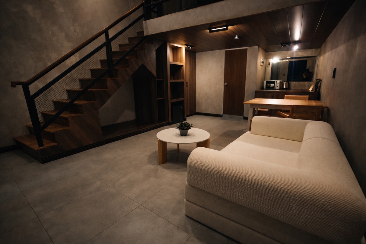 The Regal Loft | Art Deco Stay Near Picnic Grove offers a stylish and elegant escape inspired by classic Art Deco design. This well-appointed unit comfortably sleeps up to 6 guests, featuring a chic layout, cozy living space, and a Netflix-ready TV. Located just a short walk from Picnic Grove, with cafés and food stalls within the building. 24/7 staff on-site for your convenience. Breakfast from Libro Espresso available upon advance request.