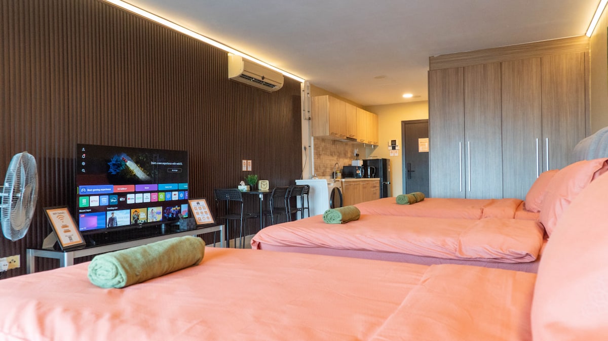 Welcome to Nice Suites Homestay @ Manhattan Sovo. Comfy staycation setting. Fully air-conditioned and spacious space added to your comfort. Plenty cafes, restaurants & bars just downstairs within walking distances. Quite hectic and happening especially during weekends. Not suitable for light sleeper as not fully soundproofed. æŹąèżæ„ć°æŒć饿玹æČçNiceㄿżæ°ćźżă èéçćșŠćçŻćąă ćźœæçç©șéŽćç©șè°èźŸæœïŒèꩿšćæèéă æ„Œäžæ„èĄćłćŻć°èŸŸäŒć€ććĄéŠăé€ć ćé ć§ă㰀㠶ćšćšæ«ïŒèżéçéčéćĄăç±äșééłææäžäœłïŒäžéćçĄç èŸæ” çäșș棫ă
