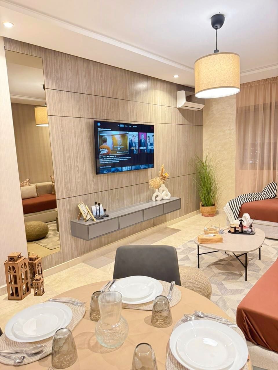 2-Zimmer-Wohnung in den Hilton City Center Residences – Neu, raffiniert und perfekt ausgestattet 🏡✨. Genießen Sie eine moderne Umgebung mit gepflegtem Design, ideal gelegen im Herzen des Stadtzentrums von Tanger, nur wenige Schritte vom TGV-Bahnhof, dem Mall Tanger City Center, den besten Restaurants, Cafés und der Küstenstraße entfernt. Die Wohnung bietet absoluten Komfort mit ihrer hochwertigen Ausstattung und ihrer warmen Atmosphäre, perfekt für einen Aufenthalt mit Familie oder Freunden 💫.