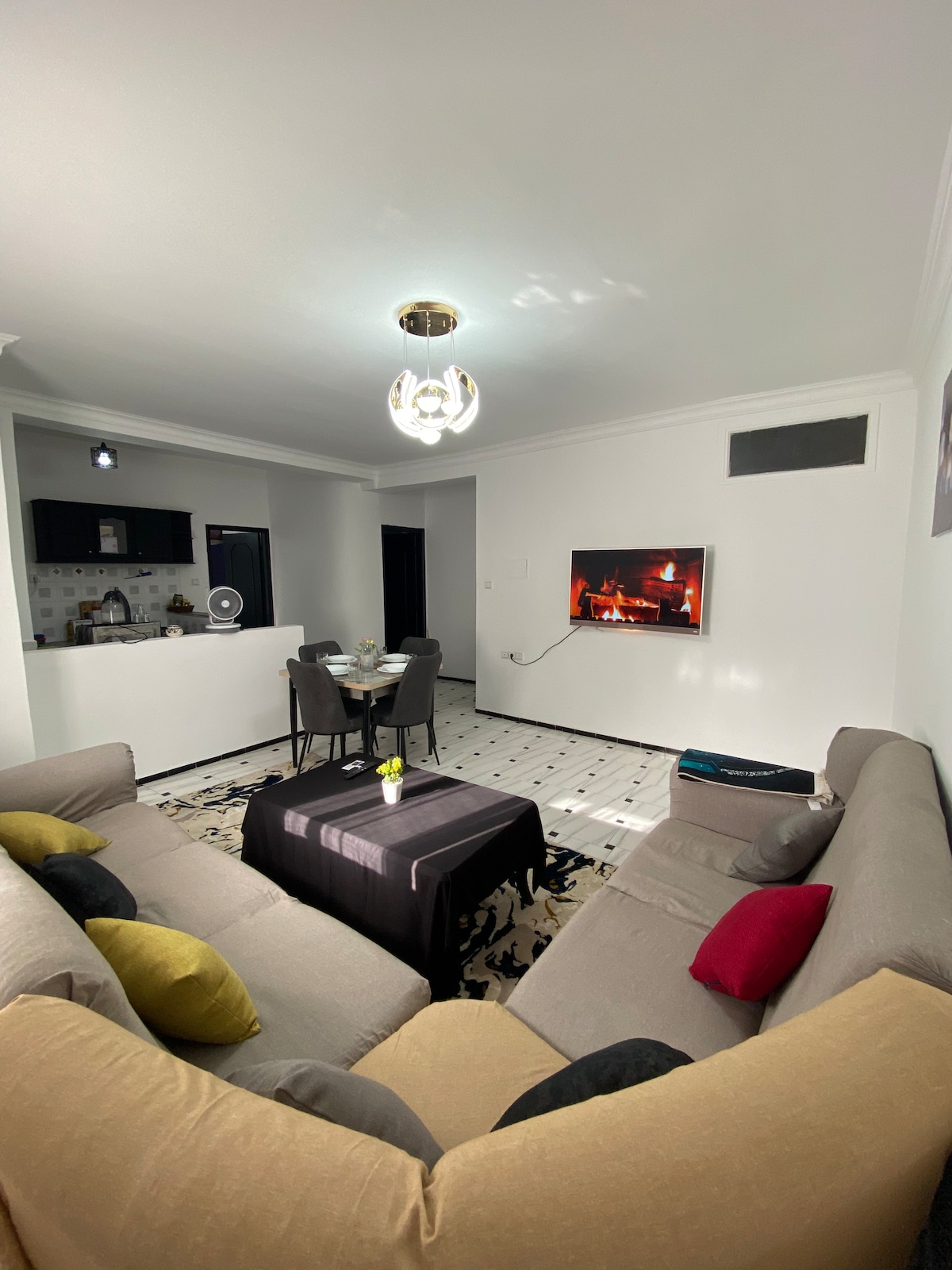 Modern eingerichtetes Loft in der Innenstadt ,mit hochwertigen Oberflächen, einem Schlafzimmer mit Kingsize-Bett , einem großen Wohnbereich mit einem Design-Esstisch, einem iPad-Fernseher mit Netflix und anderen Ausstattungsmerkmalen. Das Loft liegt nur 5 Minuten vom Einkaufszentrum von Tangier und dem Stadtzentrum und 1 Meile von der alten Medina entfernt. Du wirst keinen besseren Ort finden als diesen in Tanger. Für perfekte Familien oder Paare oder einen individuellen Urlaub bietet dir das Apartment das perfekte Gefühl für einen Kurzurlaub.