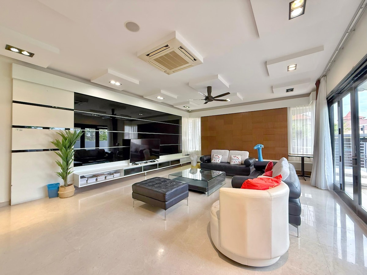 The Dan Garden -瑭苑 Ein neu eingerichteter Bungalow mit über 6000 Quadratfuß mitten in Malacca. 15-20 Minuten von hier zur Jonker Gallery. An unserem Standort werden die Gäste während der Hochsaison keine Lärmbelästigung durch Autos und Verkehr erleben. Premium-Toilette und Smart-TV in jedem einzelnen Zimmer. Die Gäste können sich in unserem Garten und unserer Landschaftsgestaltung entspannen und die Musik genießen, die von den Deckenlautsprechern im Wohnzimmer kommt. Wir garantieren, dass du diesen Ort wegen des extravaganten Ambientes, der bequemen Betten und natürlich des Außenbereichs lieben wirst. Zimmer 1 & Zimmer 4 - Super-Einzelbett x 2 - Queensize-Bett x 1 - Badezimmer (Shampoo & Handtuch inklusive) - Smart-TV (starke Verbindung) -Föhn - Kleiderbügel -2,0 PS Klimaanlage Zimmer 2 & Zimmer 3 - Kingsize-Bett x 1 - Badezimmer (Shampoo & Handtuch inklusive) - Smart-TV (starke Verbindung) -Föhn - Kleiderbügel -1,5 PS Klimaanlage Fernsehzimmer -55-Zoll-Smart-TV (starke Verbindung) - Hochwertige Lautsprecher - Schlafsofas Küche -Teller & Tassen & Löffel & Gabel (für 12 Gäste) - Kochutensilien - Coway-Wassermaschine - Barkeeper -Kühlschrank - Waschmaschine Wohnzimmer - Esstisch -2,5 & 3,0 PS Kassettenklimaanlage -Majong-Tisch Sonstiges: Carport (für 3 Autos) Innenhof mit Gartenblick x 2 Modems x 2 Verbot - Rauchen ist in der Unterkunft verboten. - Haustiere sind nicht erlaubt. - Keine Aktivitäten im Freien nach 23:00 Uhr