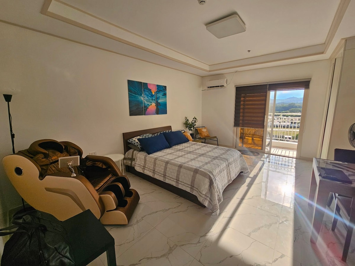 Willkommen in unserer modernen 1-Zimmer-Wohnung in der Nähe des Flughafens Clark. Dieser stilvolle Rückzugsort verfügt über einen gemütlichen Balkon, ein komfortables Queensize-Bett für 2 Gäste und das Sahnehäubchen auf dem Kuchen – einen Infinity-Pool auf der Dachterrasse mit atemberaubender Aussicht. Du wirst die Bequemlichkeit lieben, in der Nähe von beliebten Restaurants, Einkaufszentren, einem aufregenden Wasserpark und anspruchsvollen Golfplätzen zu sein. Egal, ob du geschäftlich oder privat in Angeles City bist, diese Wohnung ist dein perfekter Ausgangspunkt. Buche jetzt für einen unvergesslichen Aufenthalt!