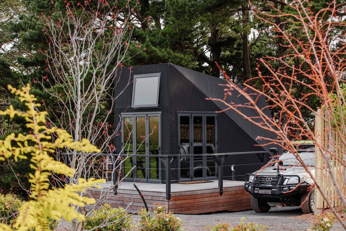 Located creekside in a rainforest our Escape Pod (tiny house) is in one of the most beautiful locations the region has to offer. You will feel your worries ebb away while you listen to the natural surrounds, or your fave tunes. What you get up to during the day is totally up to you, go hiking, explore the local beaches, shops, cafés and eateries or simply sit by the fire with a good book and be alone with your thoughts! Your off-grid venture awaits – This is not your normal hotel stay!!