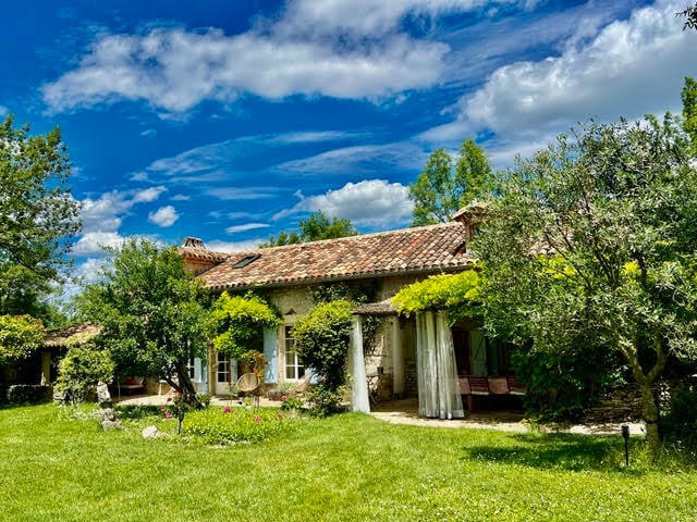 A picturesque 19th Century Quercynoise Farmhouse with Pigeonnier, sitting on two hectares of private land and surrounded by beautiful wild gardens with panoramic views. Pérard is also in easy reach of the medieval villages of Caylus and Saint Antonin Noble Val and close to the wine regions of Cahors and Gaillac. Its location combines the benefits of a local community with a real sense of rural tranquillity.