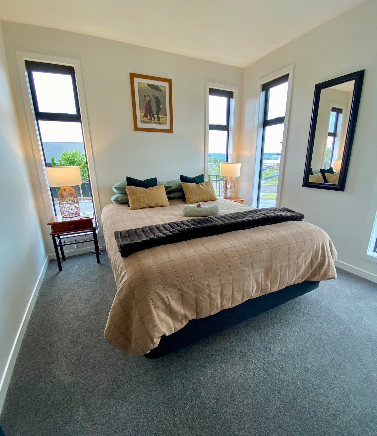 Lehne dich zurück und entspanne dich – in dieser ruhigen, stilvollen Unterkunft. Der Blick über den See zur Acacia Bay wird dich faszinieren. Eingang durch einen Ranch-Schieber von deiner eigenen Nordterrasse. Privater Zugang ist zu den Botanischen Gärten verfügbar, wo alte einheimische Bäume einen üppigen Baldachin bieten, der atemberaubende Spaziergänge abdeckt, bevor du dich mit einem Glas Wein auf deiner eigenen Terrasse niederlässt, den See beobachtest und der gesamten Vogelwelt lauschst. Inbegriffen ist ein separates Schlafzimmer mit einem Queensize-Bett, einem modernen gefliesten Badezimmer und Smart-TV.