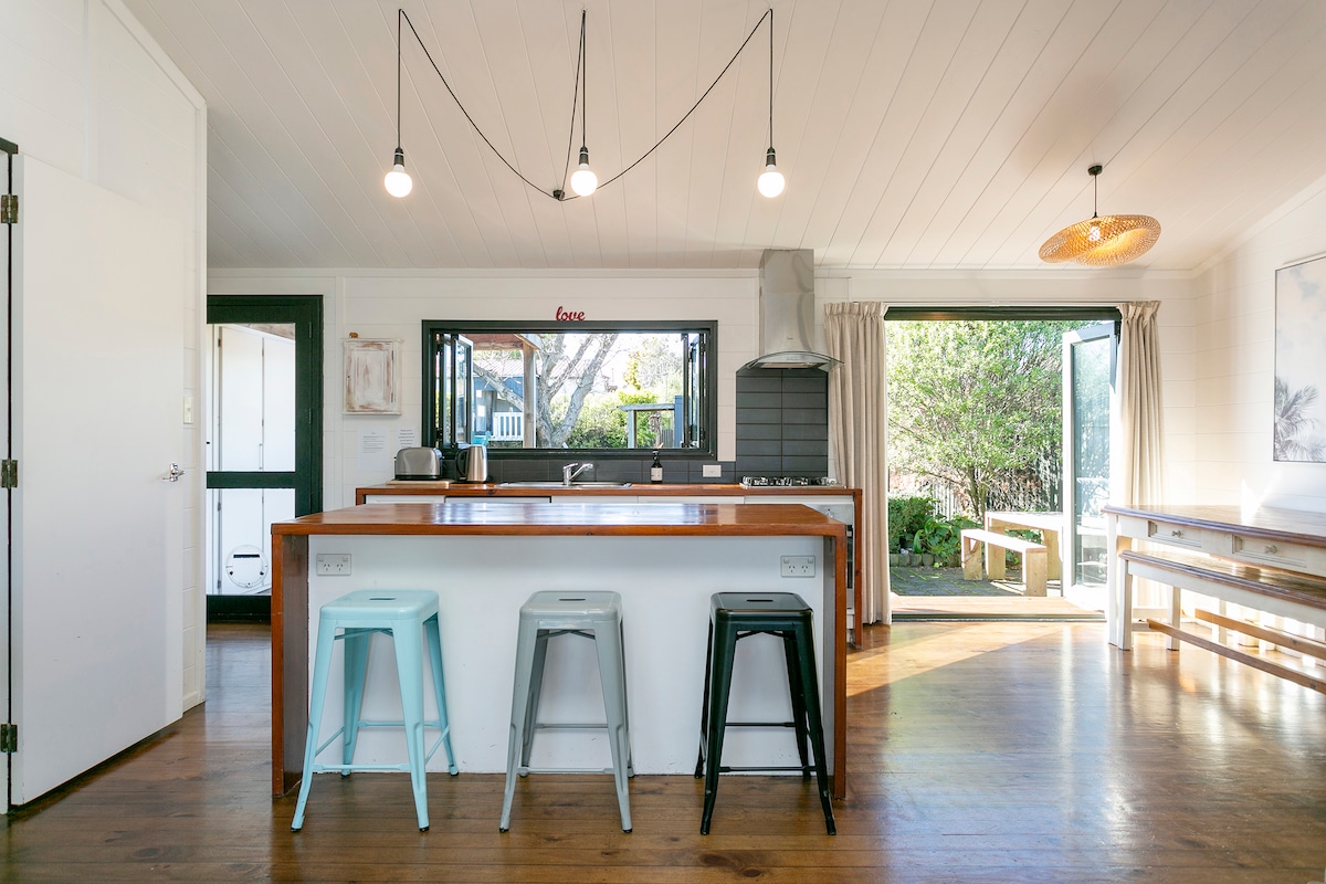 Top 5 % Airbnb | Makelloses Charakterhaus im Zentrum von Taupō – Check-in und Check-out um 12:00 Uhr Elegant, makellos und sorgfältig kuratiert – das Kowhai Cottage ist ein privater Rückzugsort mit zwei Schlafzimmern, nur wenige Minuten vom See und der Stadt entfernt. Genieße luxuriöse Bettwäsche, eine voll ausgestattete Küche mit Kaffeemaschine, einen Holzofen, schnelles WLAN und ein Badezimmer mit durchdachten Extras. Haustierfreundlich mit einem komplett eingezäunten Garten, Designer-Akzenten und friedlichen Vibes überall - ein Gäste-Favorit für Komfort, Charme und Pflege.